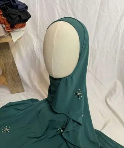 Explorez la délicatesse de notre collection de hijabs à perles sur Iklilboutique.com. Chaque modèle en jersey de qualité est orné de perles fines, apportant une touche d'élégance intemporelle à vos tenues pour les moments précieux. Taille unique.Hijab Prêt-à-Porter Orné de Perles – Vert Émeraude Élégant