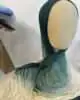 Ce foulard dégradé est un vrai plaisir pour les yeux. En haut, le hijab est d’un bleu canard profond (ou un bleu pétrole / vert d’eau foncé), une couleur très élégante et moderne. Au milieu, il s’éclaircit en un vert d’eau plus clair ou un turquoise doux, apportant beaucoup de fraîcheur. Tout en bas, il devient crème ou blanc cassé, très lumineux. L’effet de couleur est très joli et donne une touche unique à ce hijab confortable.
