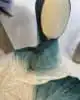 - Couleur : Dégradé de bleu canard/pétrole/vert d’eau foncé, turquoise doux, crème/blanc cassé