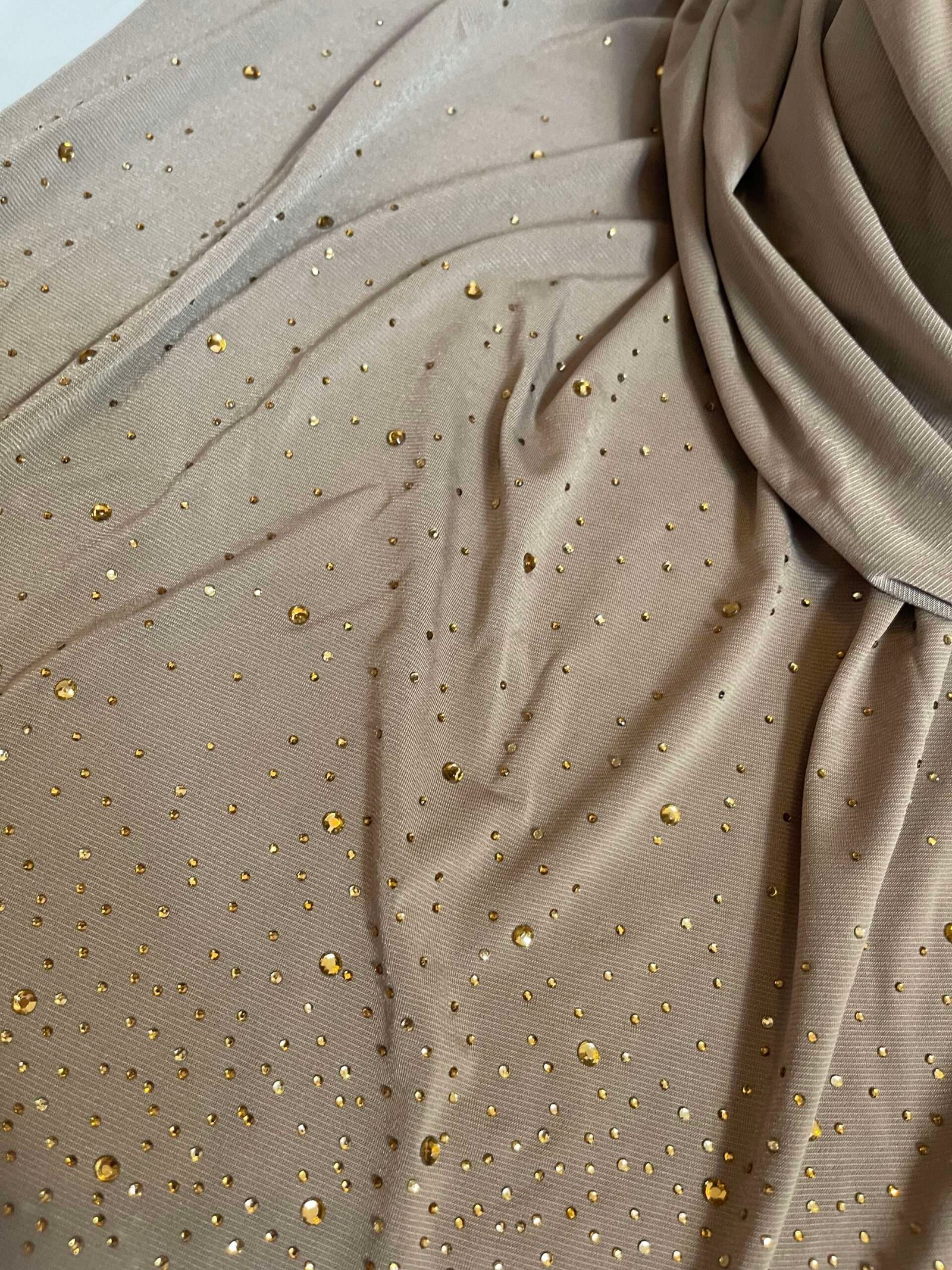 Hijab Jersey Élégant Effet Ciel Étoilé – Taupe Doré Scintillant