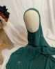 Ce hijab uni se distingue par sa couleur vert émeraude profond, une teinte riche, intense et incroyablement élégante. Le vert émeraude est une couleur royale qui évoque le luxe et la sophistication. De délicates broches composées de perles et de petits strass sont artistiquement disposées sur le hijab, apportant une touche de lumière et de préciosité discrète.