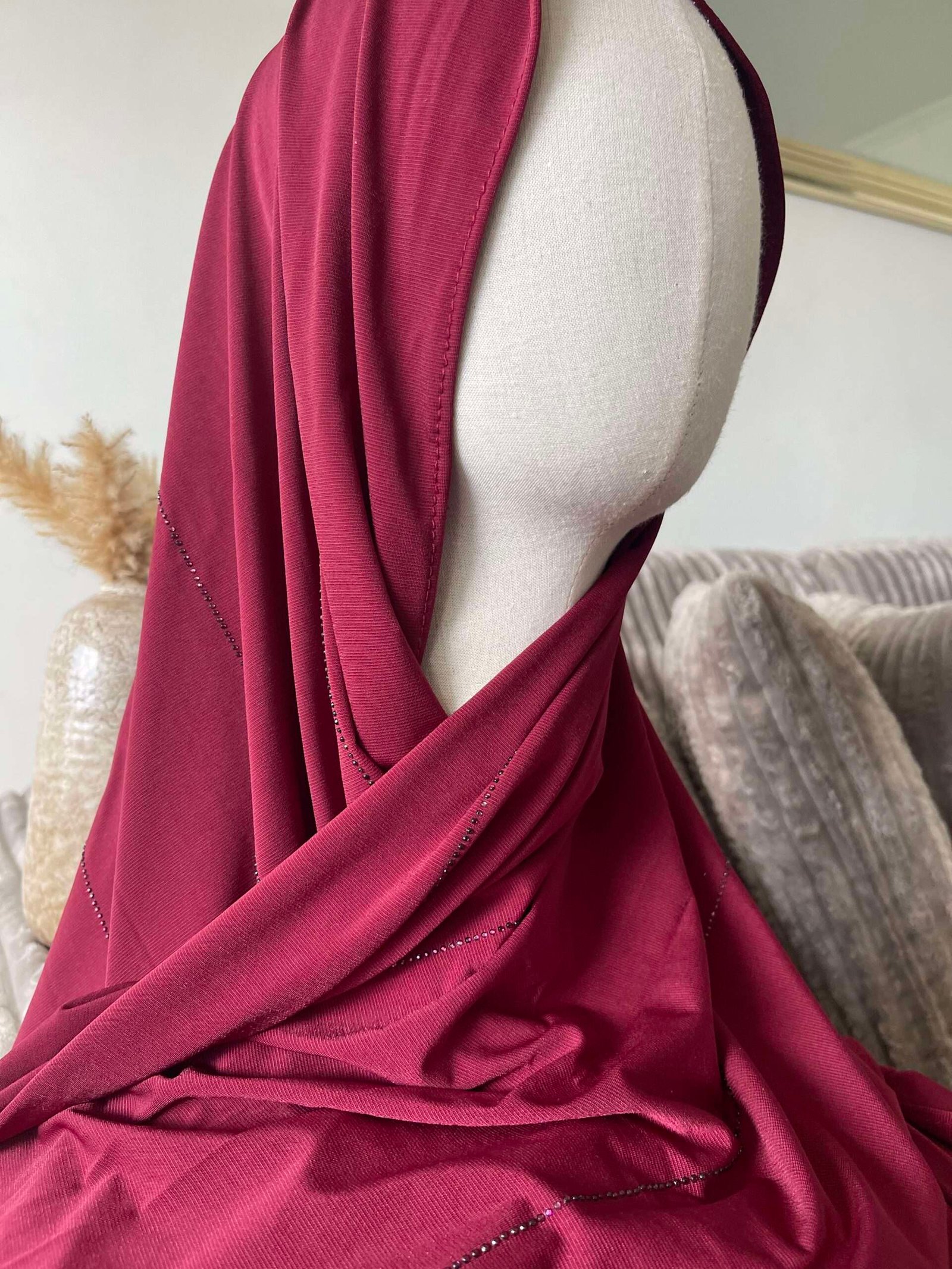 Hijab Jersey Élégant à Strass – Rouge Framboise Scintillant